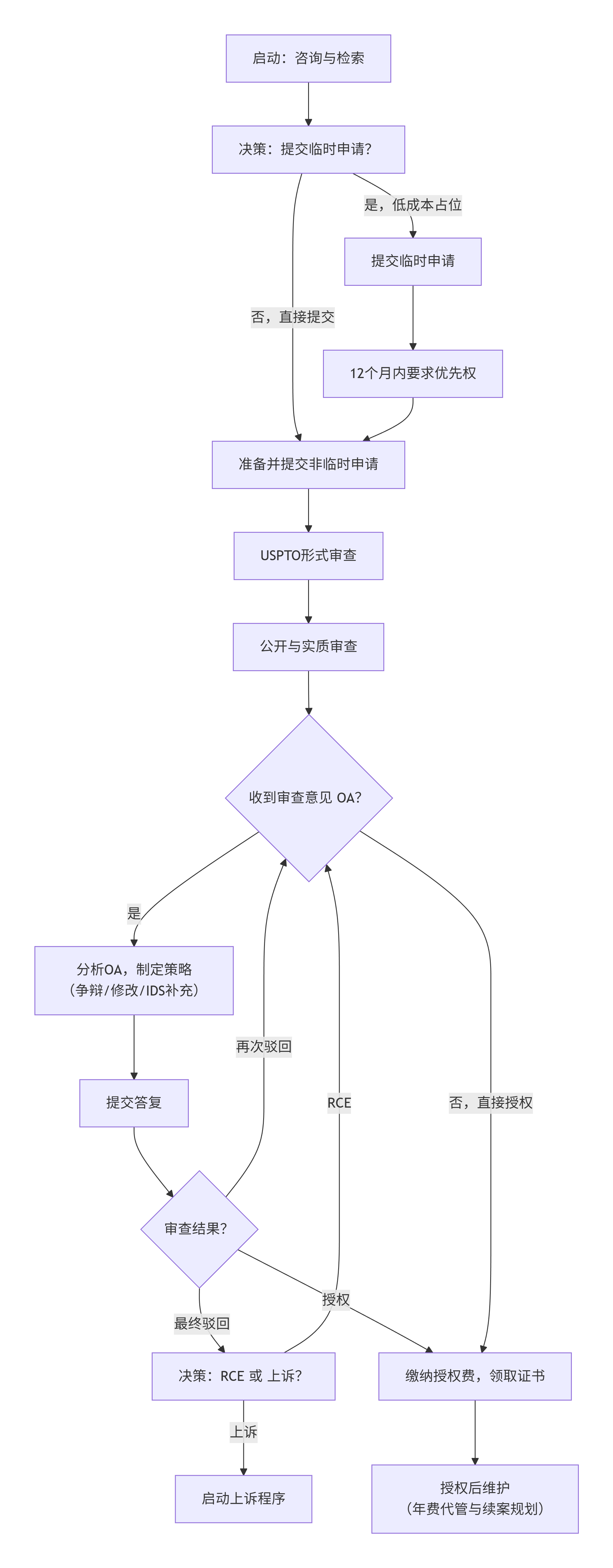 本服务是专注于美国市场的“端到端”专利创造与资产管理解决方案。我们不仅确保申请流程符合美国专利法及USPTO规则,更侧重于通过专业的说明书撰写、策略性的审查意见答辩以及运用美国特有的“延续案”等制度,帮助客户在动态的技术和市场竞争中,建立长期、有层次、可执行性强的专利保护体系。核心目标是:高质量授权、风险管控、资产价值最大化。