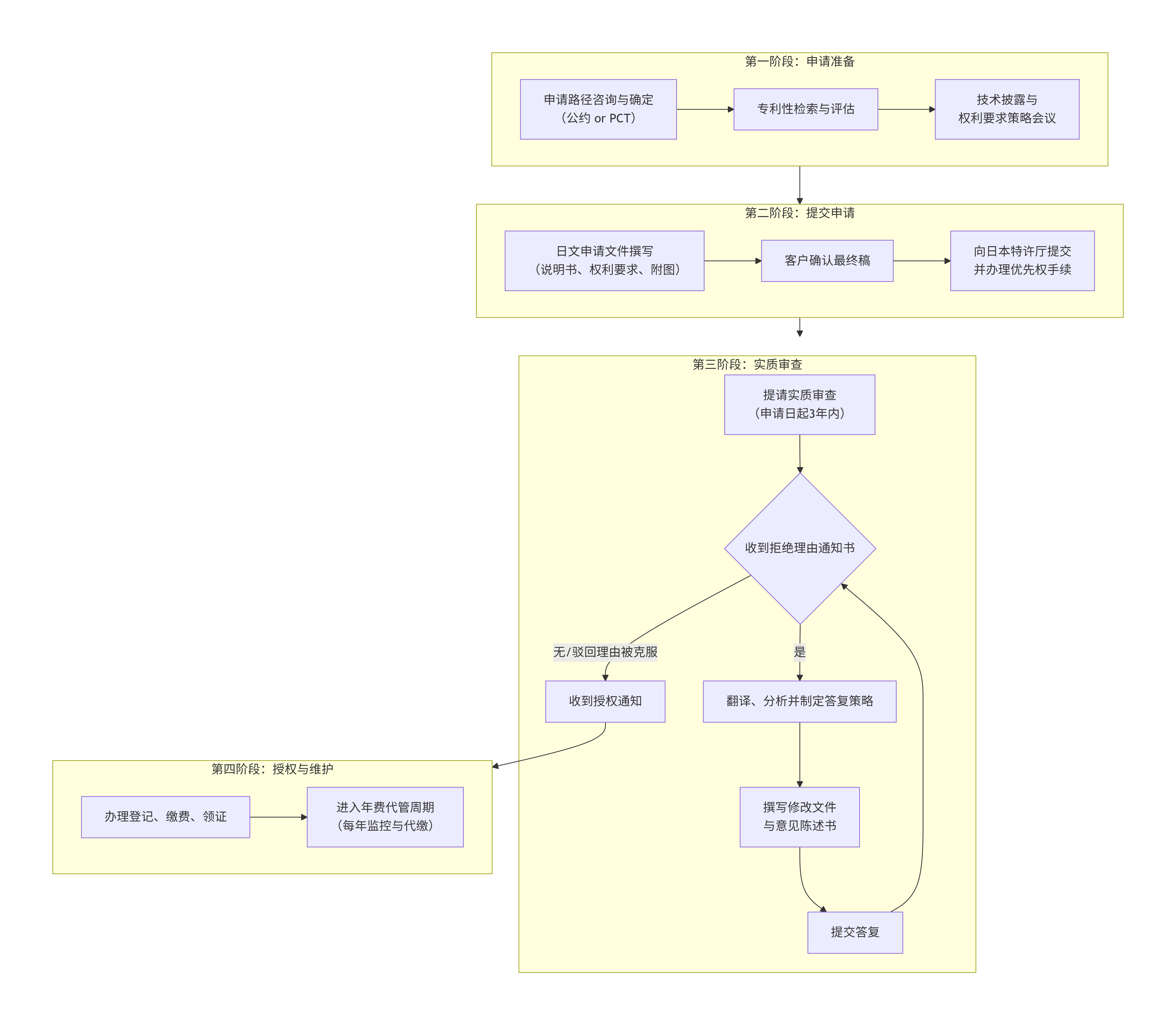 本服务旨在为中国企业或个人提供专业、精准、高效的日本发明专利申请与全生命周期管理代理服务,帮助客户在日本市场获得高质量的专利权,并进行有效的资产维护与运营。具体为:为客户提供从发明创意到日本专利权获得、维持直至终止的全流程代理与咨询。日本专利制度具有其独特性(如早期审查、新颖性宽限期、独特的驳回理由通知制度等),且官方语言为日语。我们依托与日本本地资深辩理士的紧密合作或自有日本执业团队,确保申请符合日本特许厅的审查实践和法律要求。核心目标是: