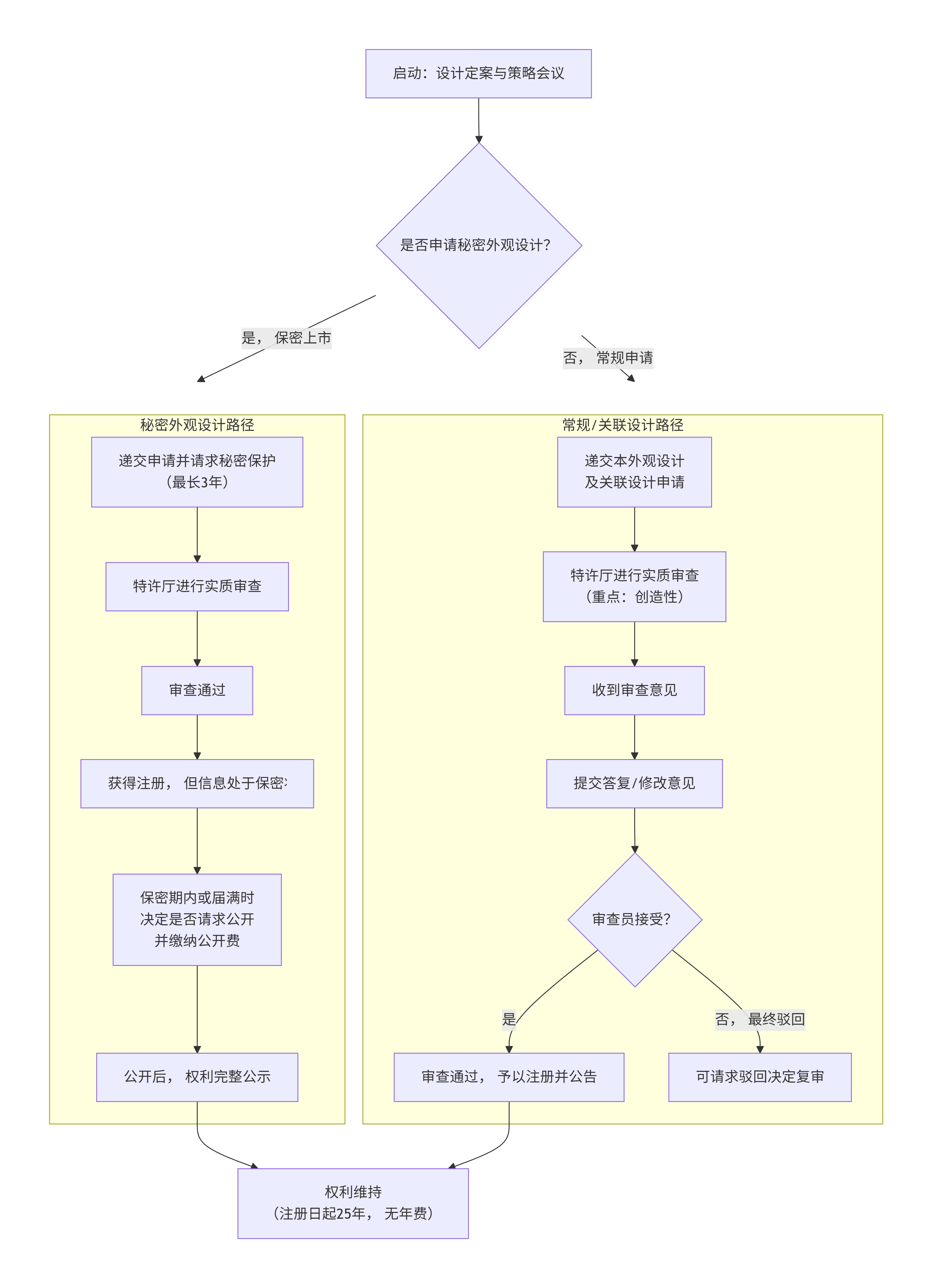 秘密外观设计制度:为客户评估并申请最长 3年 的保密期,在此期间申请内容不公开,完美契合产品的秘密上市计划。