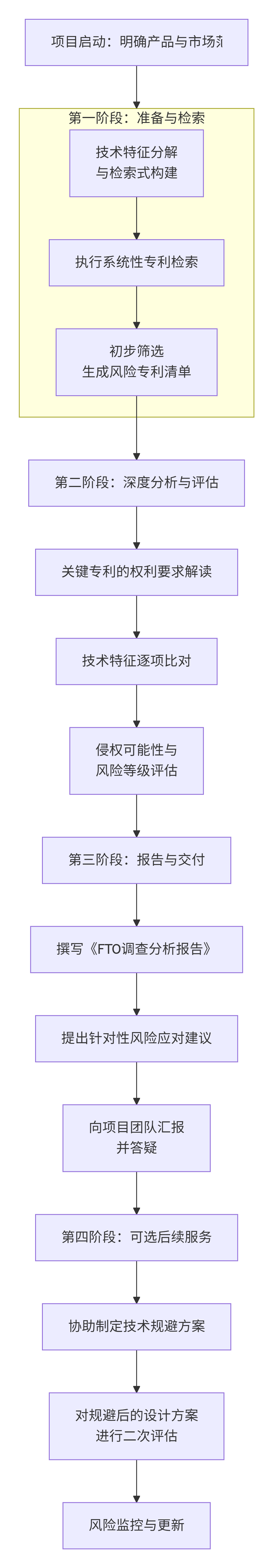FTO调查是一项预防性的专利尽职调查。它并非保证产品绝对不侵权(因无法检索所有未公开申请),而是在既定时间和地域范围内,通过对已公开专利文献的专业排查,为企业提供专利侵权风险的“体检报告”与“导航地图”。核心价值在于将不确定的法律风险,转化为可识别、可评估、可管理的商业决策依据,服务于产品研发路线调整、设计规避、许可谈判或风险接受等商业决策。