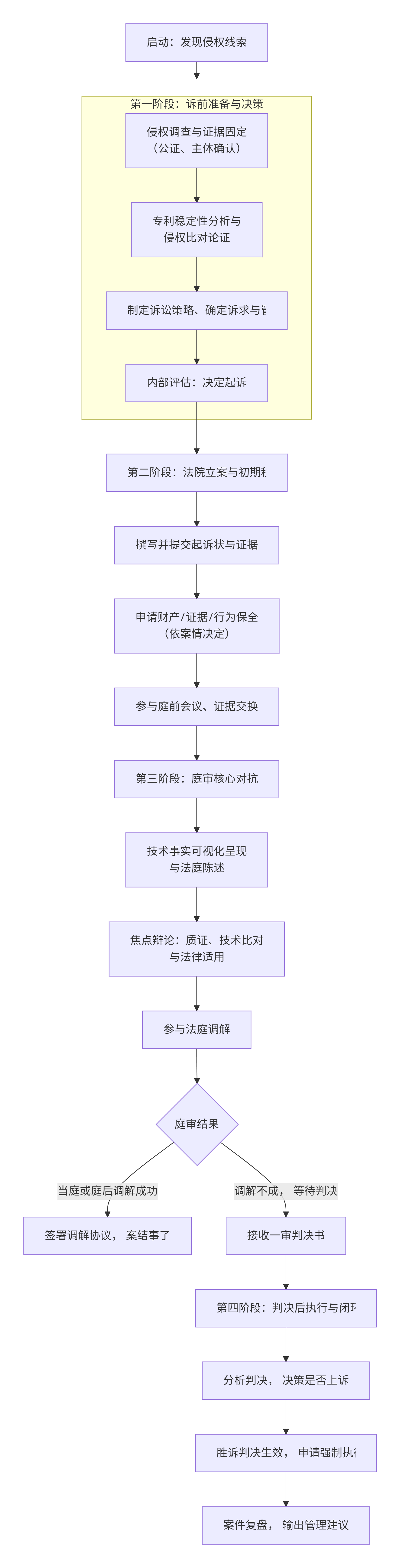 本服务是针对专利侵权行为的终局性、权威性法律解决方案。当侵权行为复杂、侵权方拒绝和解或行政途径不足以充分维权时,司法诉讼是维护权利的核心手段。我们代理客户完成从诉前策略分析到判决执行的完整诉讼程序,尤其擅长处理涉及网络销售、云服务、软件方法等复杂技术事实和新型法律问题的互联网专利侵权案件。核心价值在于通过专业诉讼策略,将技术优势转化为法律胜势,为客户赢得具有执行力的生效判决,实现权利禁止、损失填补和市场清理的核心目标。